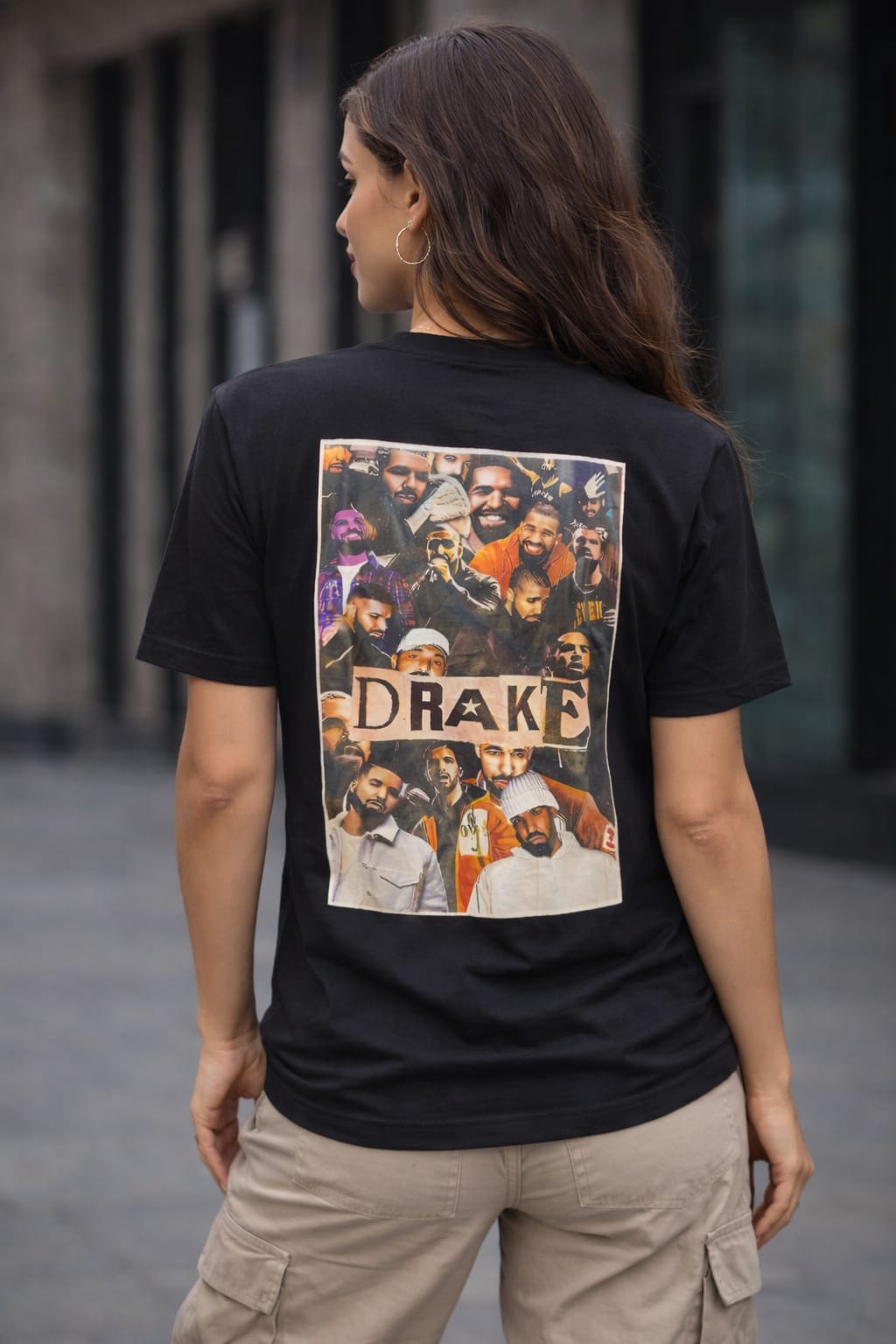 The front features a minimal painted logo print, offering a clean and understated look. The back is detailed with a large-format graphic collage print, designed to create visual impact while maintaining a refined, modern aesthetic.